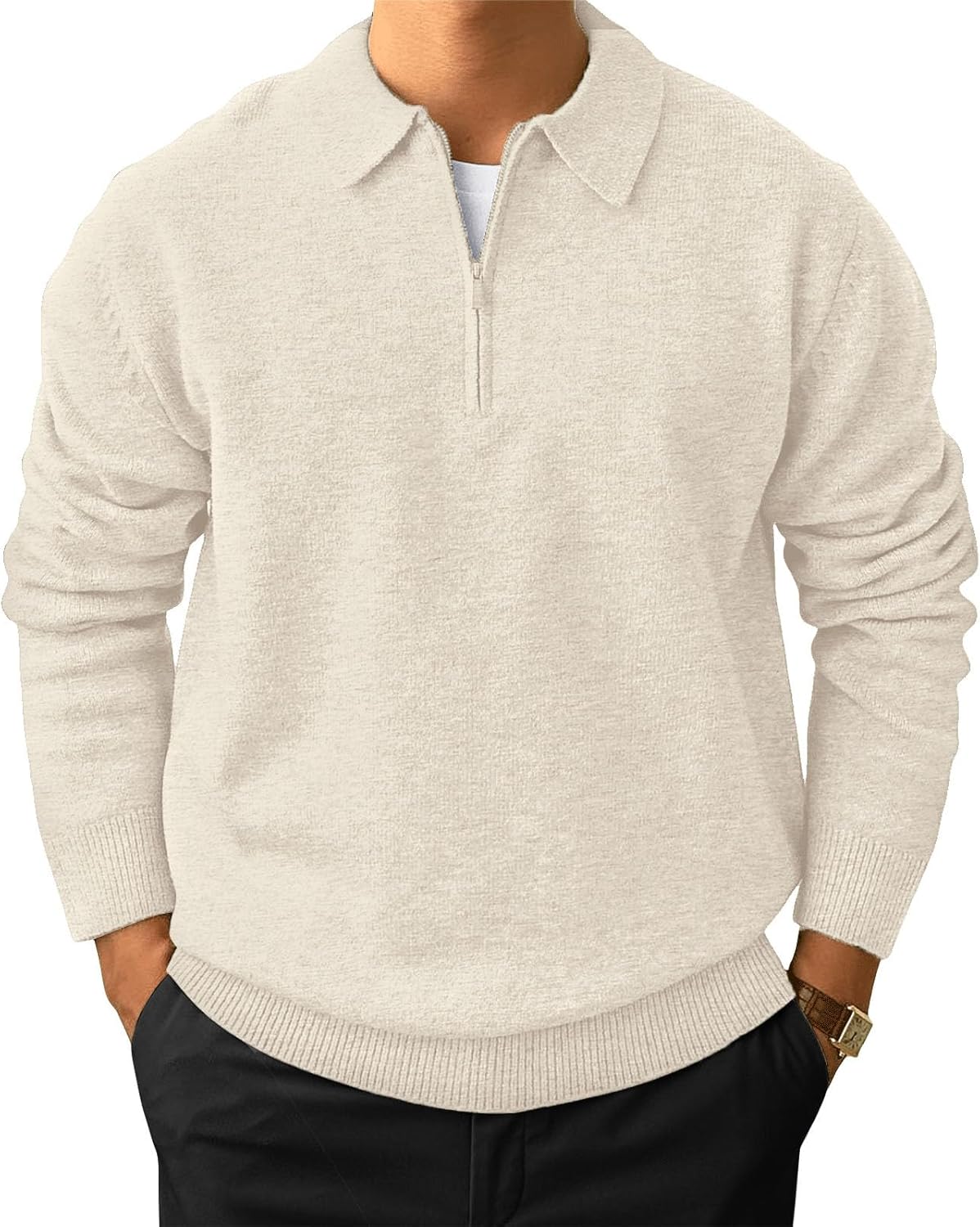 - Match: The knit zip polo can be easily paired with casual or dress pants, jeans, wear it under a jacket, blazer, or trench coat for a casual or formal look. A classic polo shirt will never go out of style.