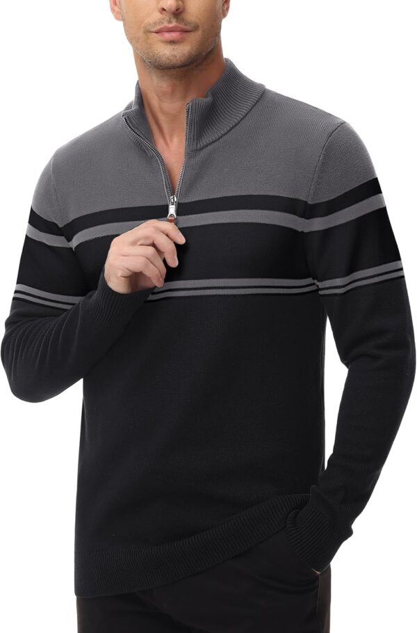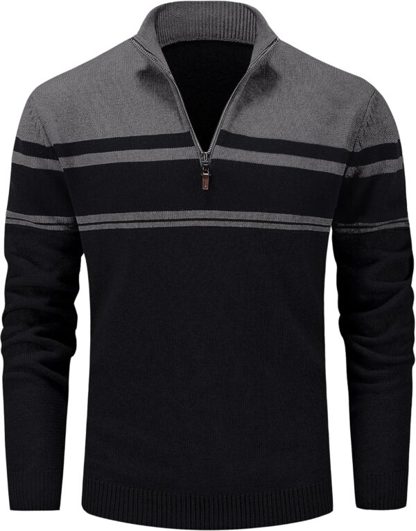 - [FASHION] 1/4 zip long sleeve, multi-color striped, polo sweater, mock neck, fall spring and winter warm pullover sweaters.